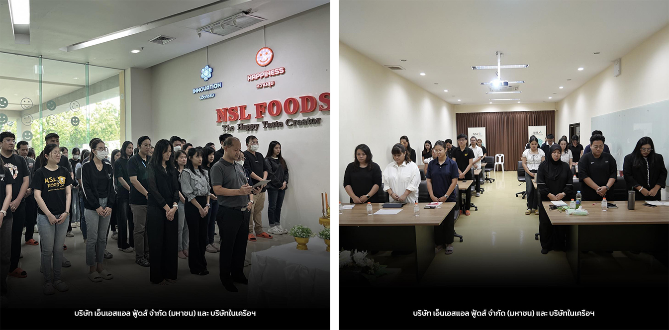 Mr. Weerachon Khaophong, Executive Vice President of NSL Foods PLC., together with the management team and employees, paid tribute before the portrait of Her Majesty Queen Sirikit The Queen Mother, expressing their profound sorrow and heartfelt remembrance of Her Majesty’s boundless benevolence.