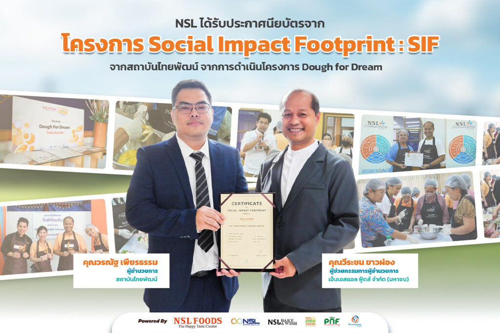 🎖 NSL ได้รับประกาศนียบัตรจากโครงการประเมินผลกระทบทางสังคมผ่านเครื่องมือรอยเท้าผลกระทบทางสังคมของภาคธุรกิจ (Social Impact Footprint: SIF)